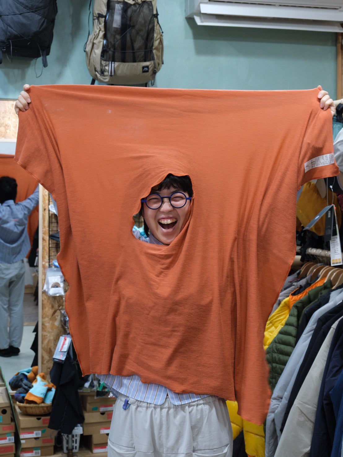 頭巾のように頭と顔を覆っても良し、目から下だけを覆っても良し、首まわりだけを覆っても良し、いろいろな使い方ができます。ハンモックでのんびりするときにはポンチョとして、最小限の毛布としても使用できます。ほどほどのあたたかさを得るために行動中にかぶってもいいでしょう。