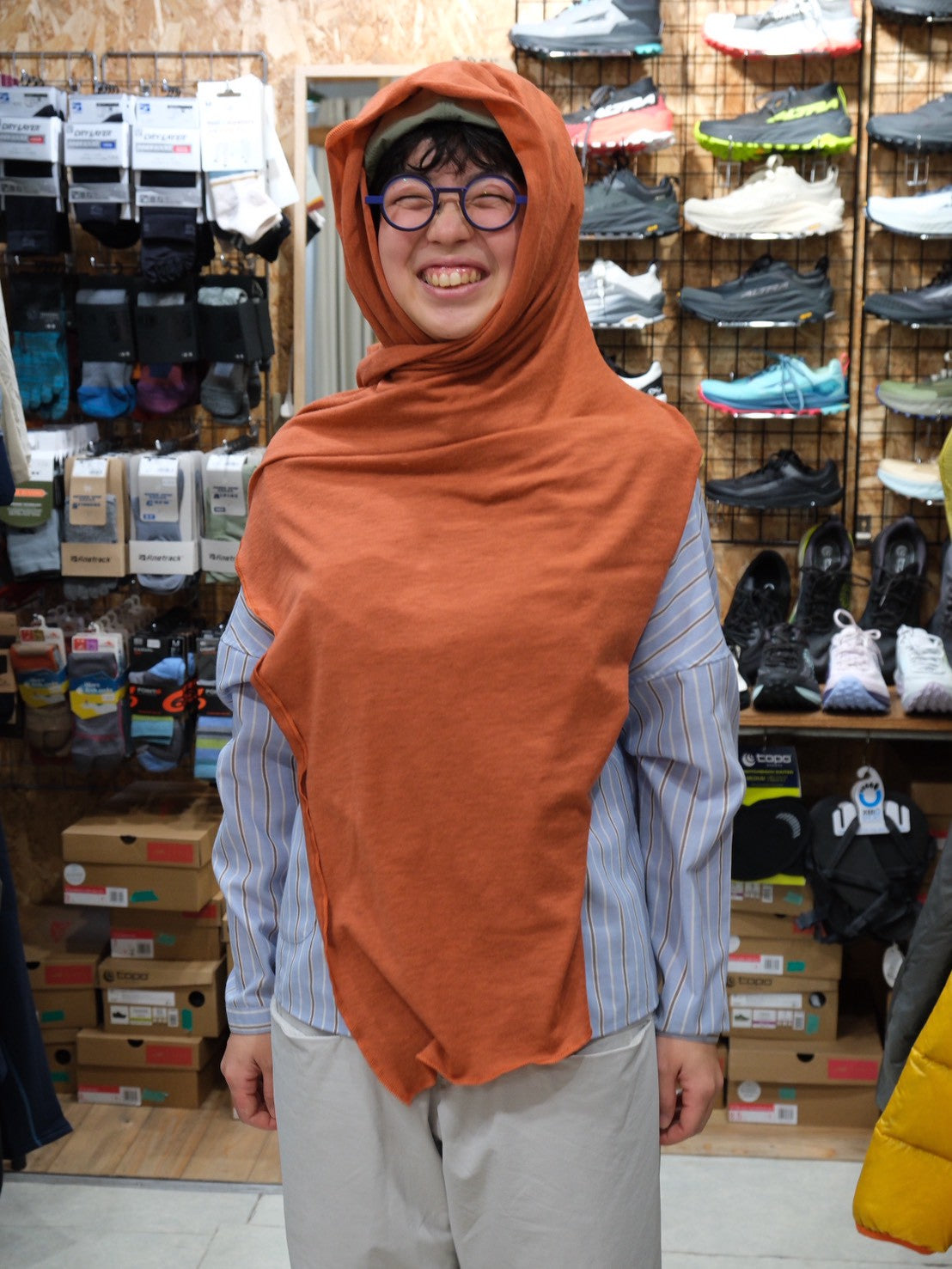 頭巾としてもポンチョとしても使用できる速乾メリノウール
