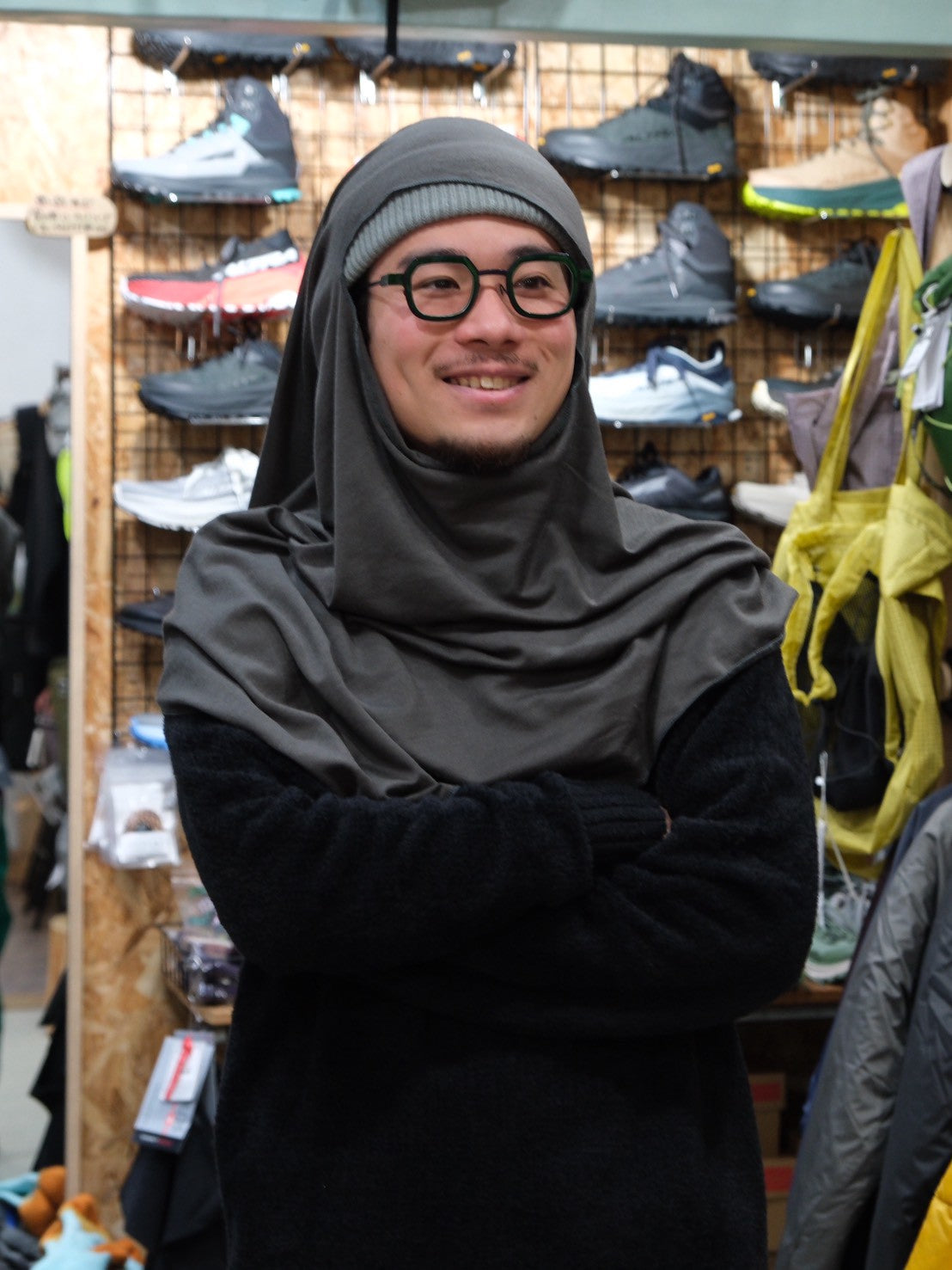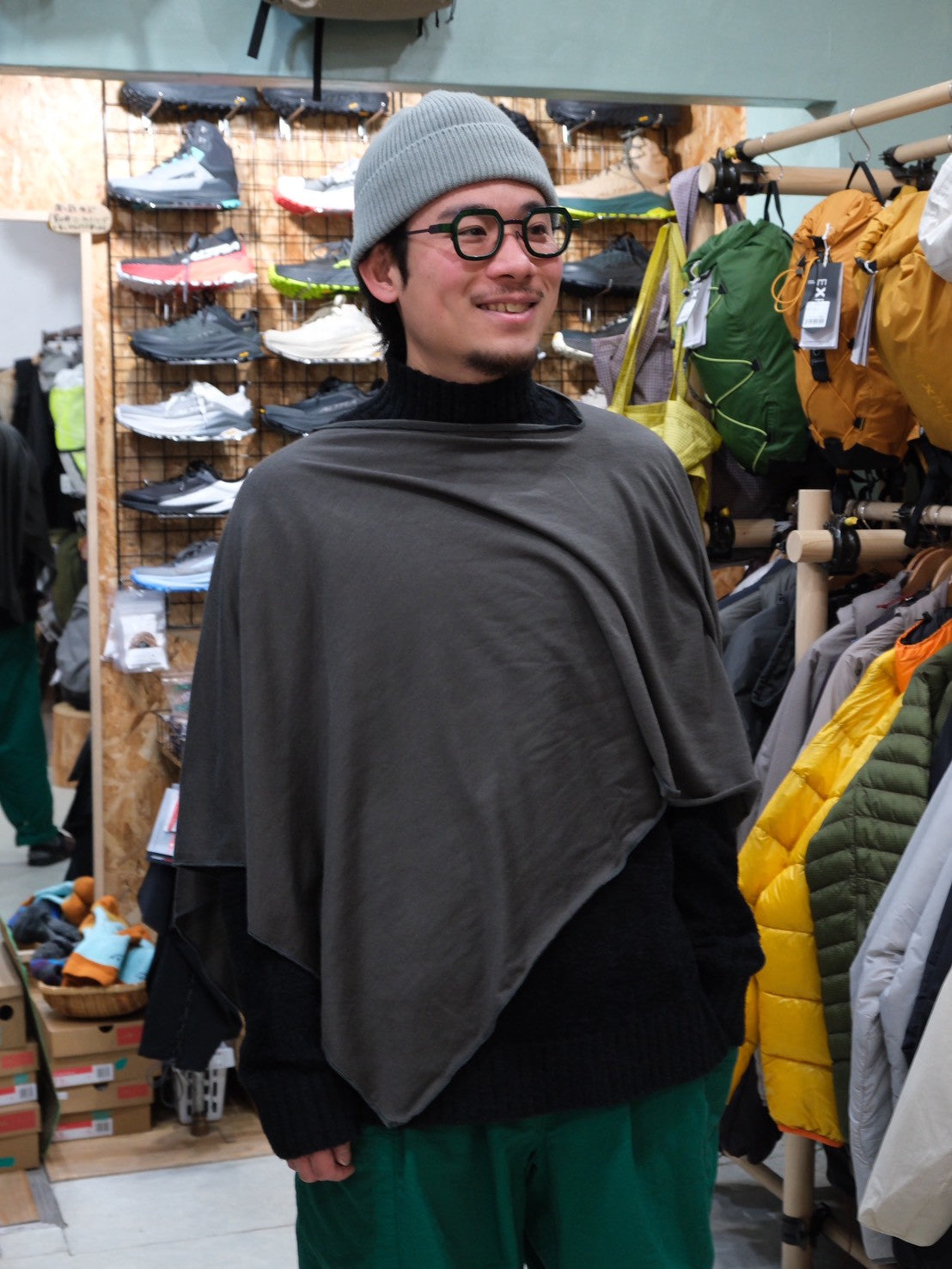 頭と顔を覆うことのできる防寒用頭巾として、あるいは気軽に羽織ることのできるポンチョとして、さらにはハンモックに揺られるときの最小限の毛布代わりとしても使える便利な布。素材には巷で大人気のOctaを採用しても良かったのですが、ここはあえてウール混素材のNUYARNを採用することで凌らしい天邪鬼なこだわりを見せています。凌は日本の言葉を大切にしていて、商品の特長が伝わりやすい日本語の商品名を心がけていますが、この商品に関しては例外的にラテン語っぽい響きにしています。