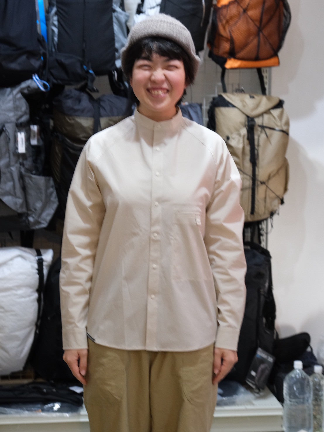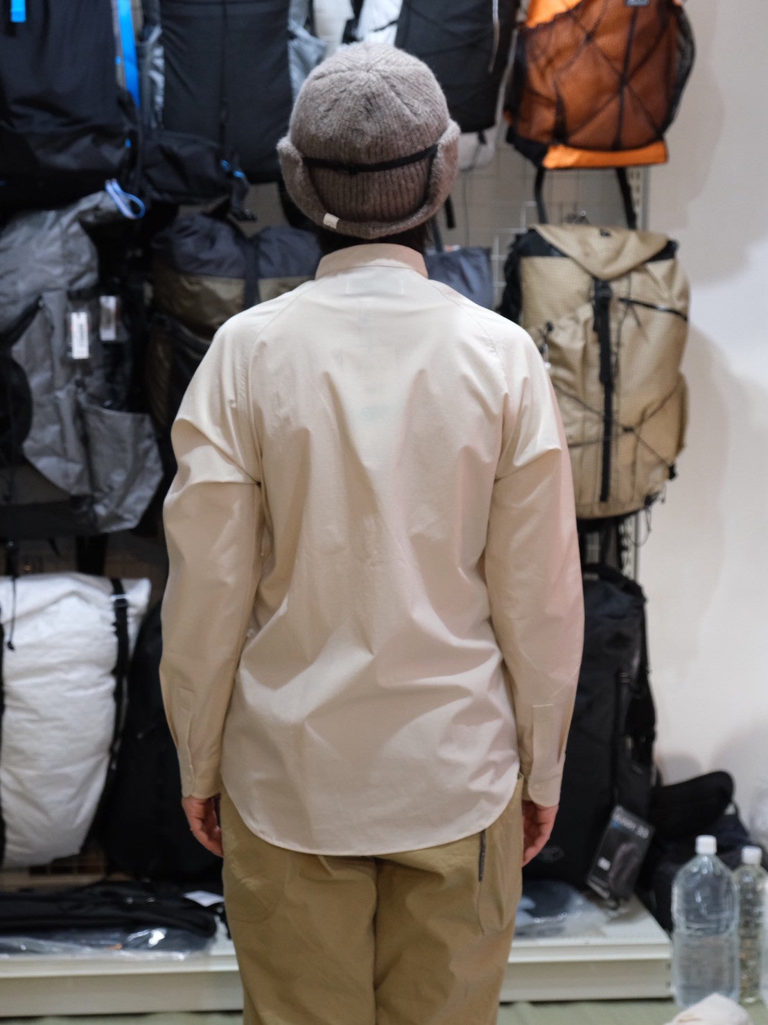 ソフトシェルのバンドカラーシャツ