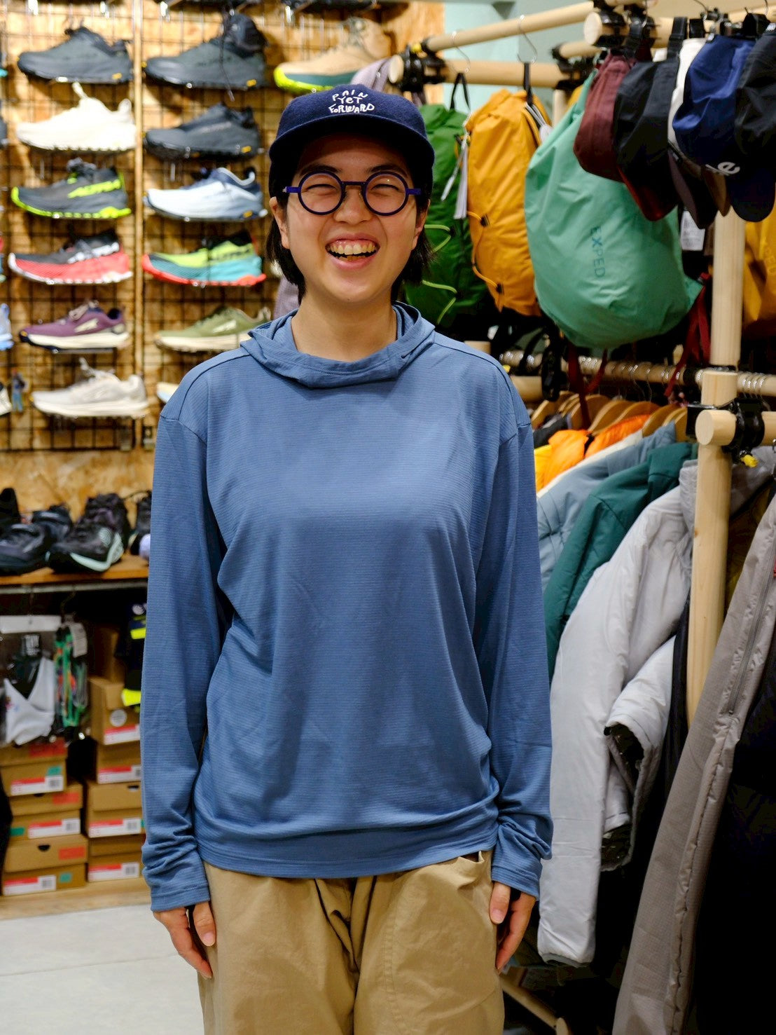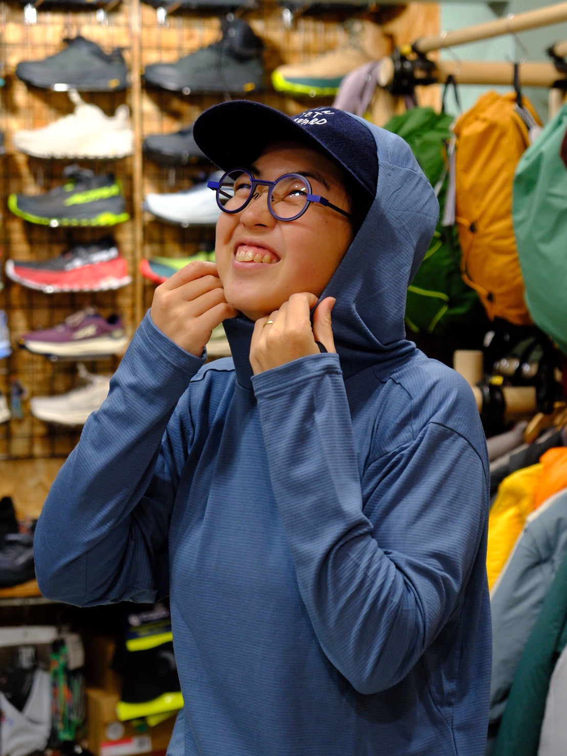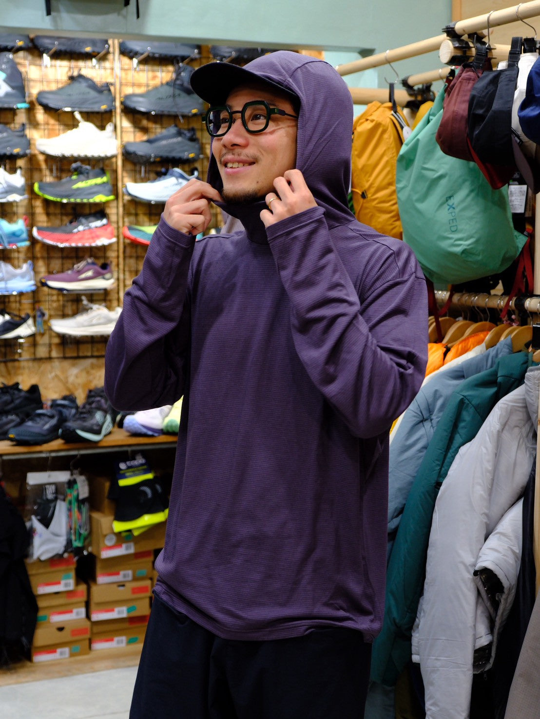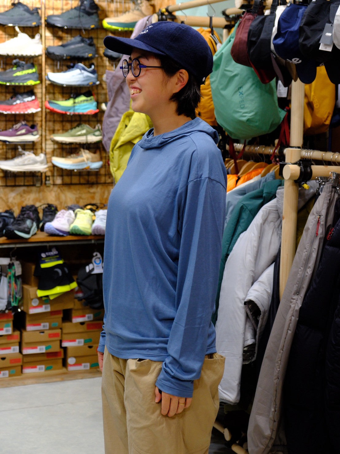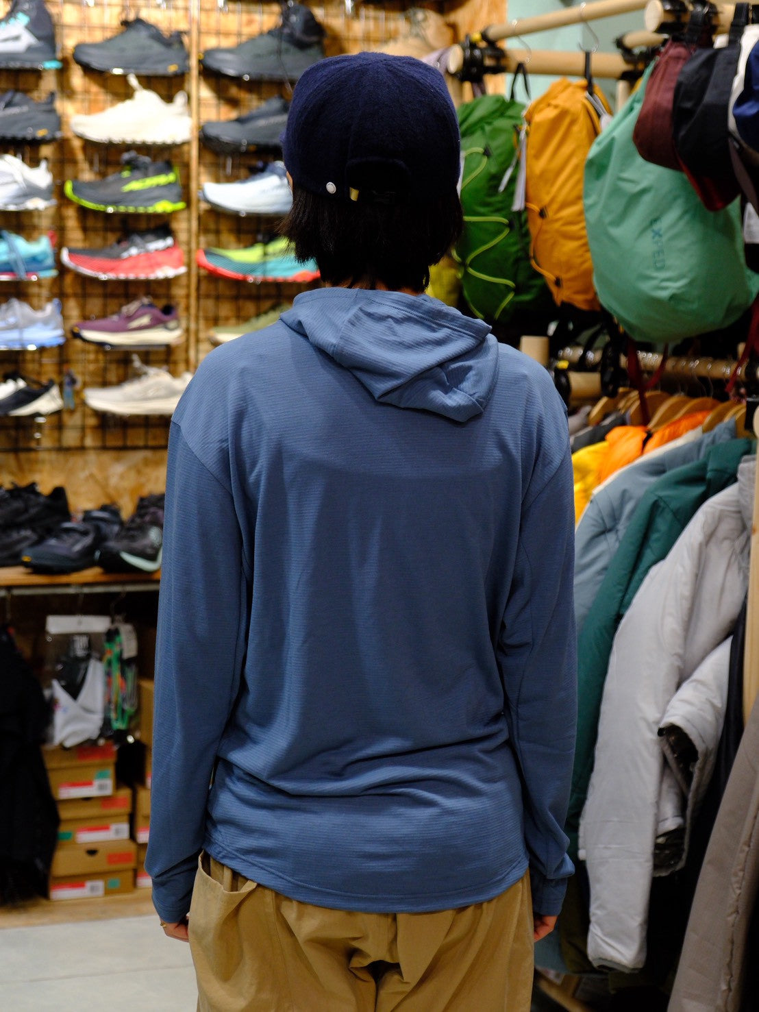 大好評のALL ELEVATIONシリーズにフーディが登場しました~!!!フードがあると日差しや風が強いときにサッとかぶって凌げるのでとっても便利です。メリノウール混で長時間の使用でも気になるニオイが出にくく、長袖はオールシーズンで使いやすいですよーーー!!!そして、滑らかな生地感でとにかく肌触りがいいんです!!重ね着もしやすいのでシャツの中やベストの下にも合わせやすく、コーディネートも楽しめる1枚です。フード付きのベースレイヤーをお探しの方、ぜひお試しくださいませ~~♪