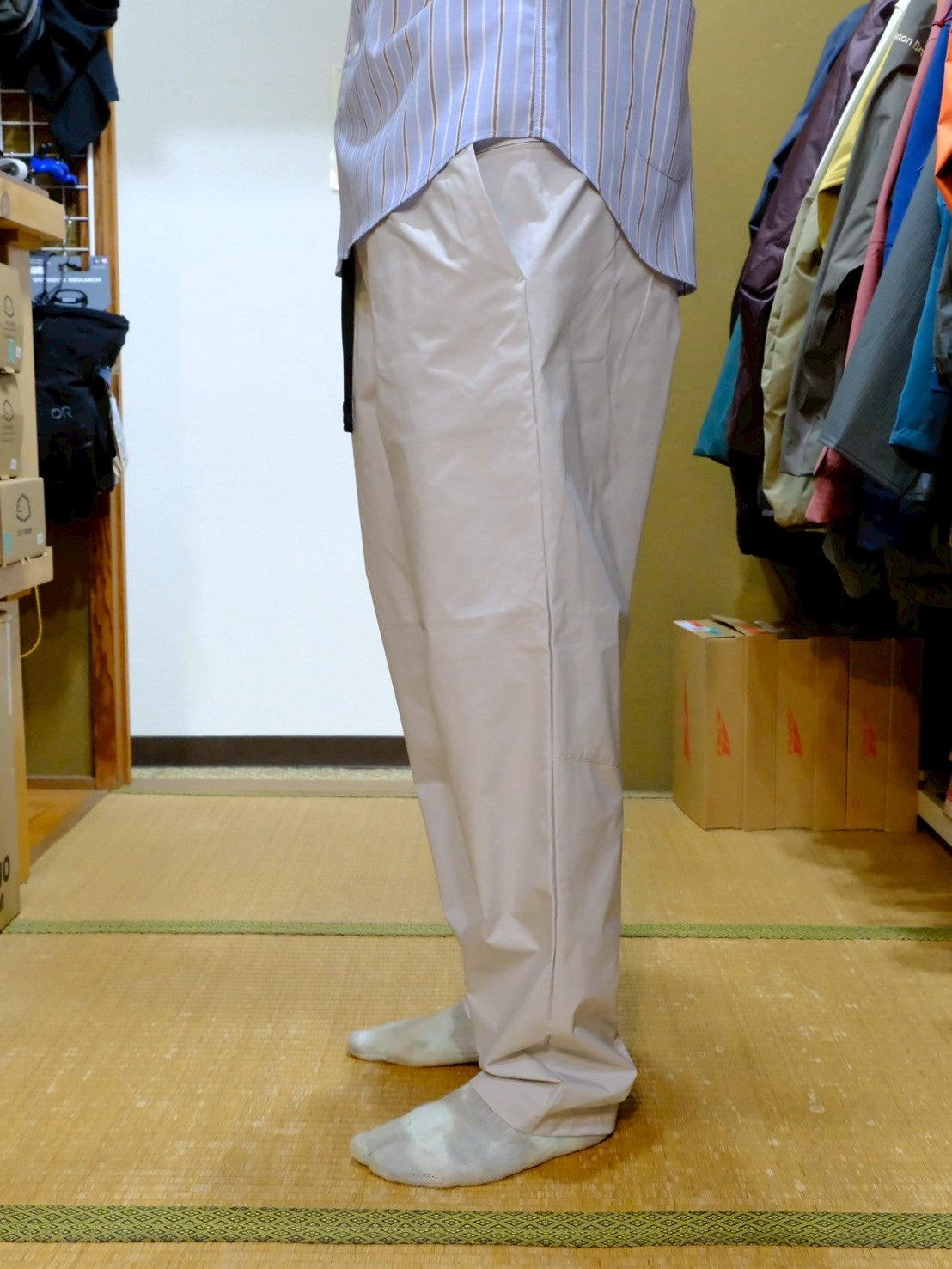 ゆったりとはいえ、裾周りはスッキリ目のシルエット、裾にはドローコードもあるので、動き辛さは感じません。