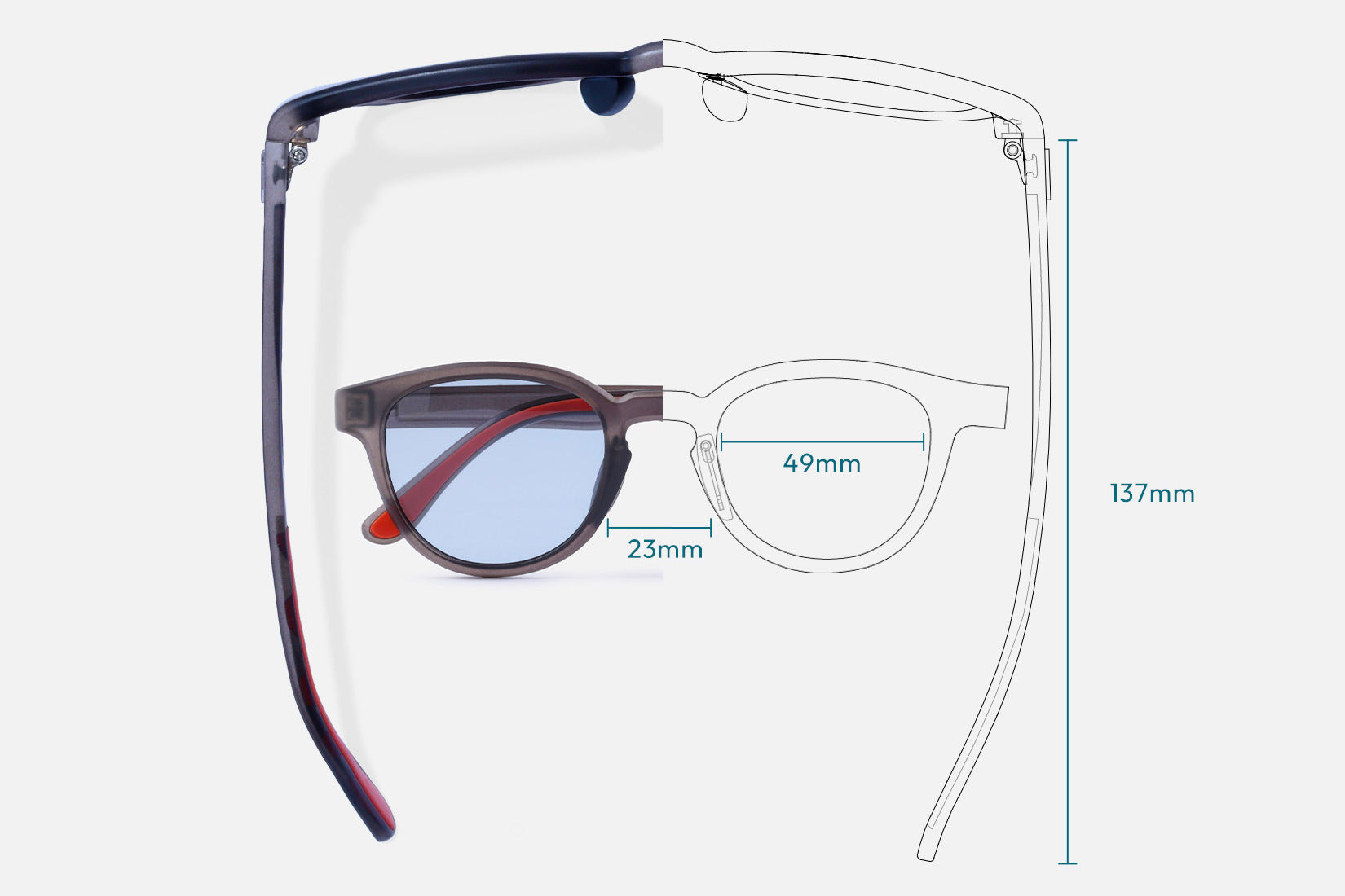 寸法(mm) 49 □23 137 ( レンズ幅, □ブリッジ幅, テンプル長さ)