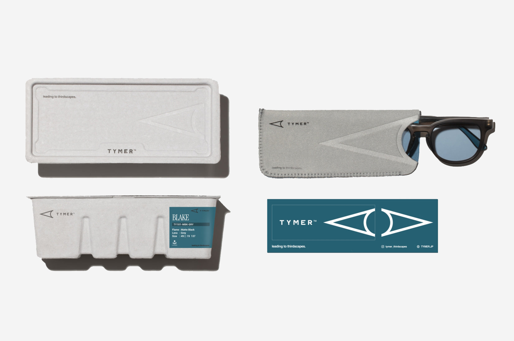 TYMER全てのサングラスには専用ボックスと専用ケースが付属します。