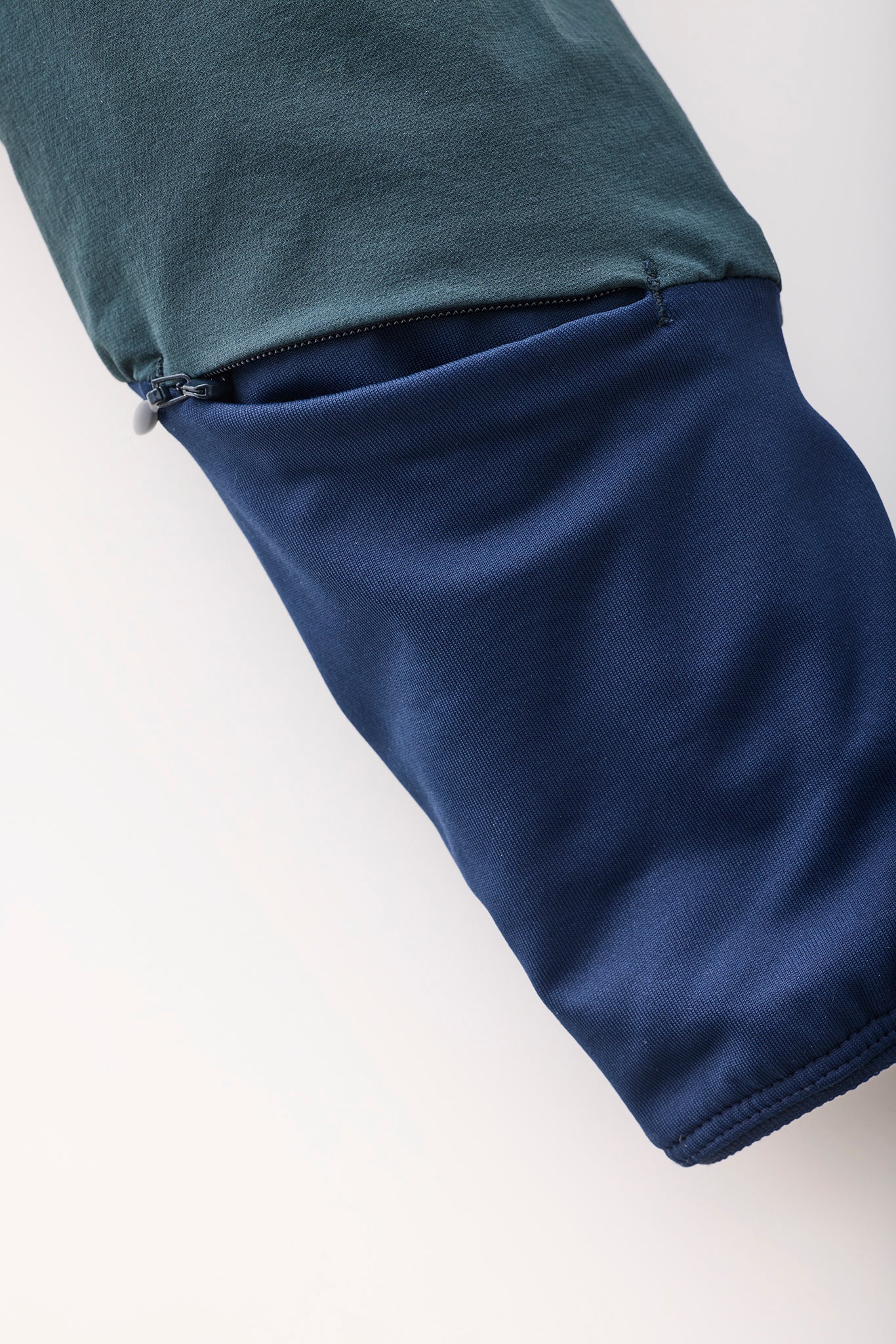 右手首にジッパー付きのポケット。小銭や鍵やクレジットカードなど最低限の貴重品は身に着けられる。 -