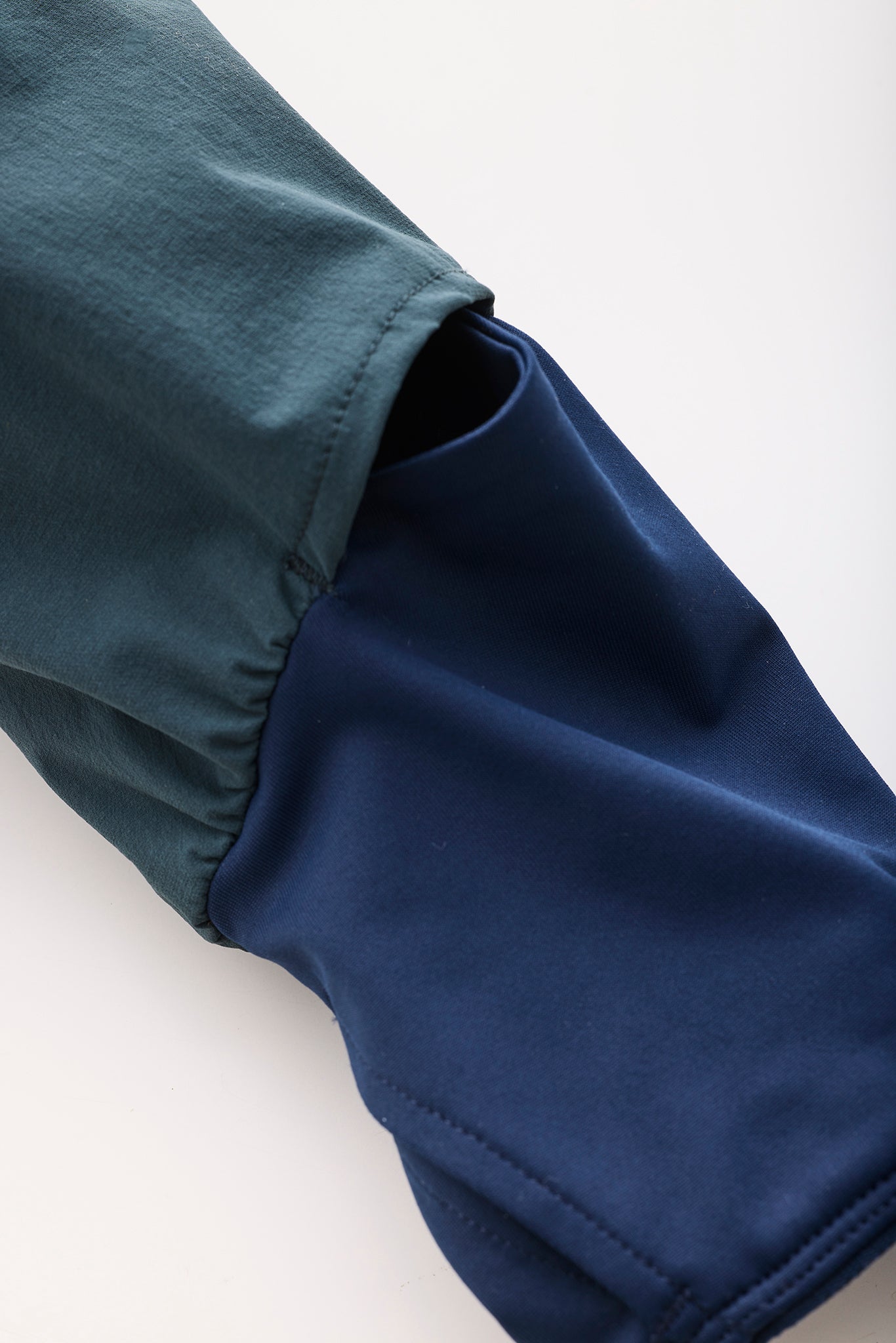 ストレッチ性が必要な部分にはソフトシェル素材を採用しており、岩場などでも動きの妨げは全くなく、ダイナミックな動きにも対応しますよ!