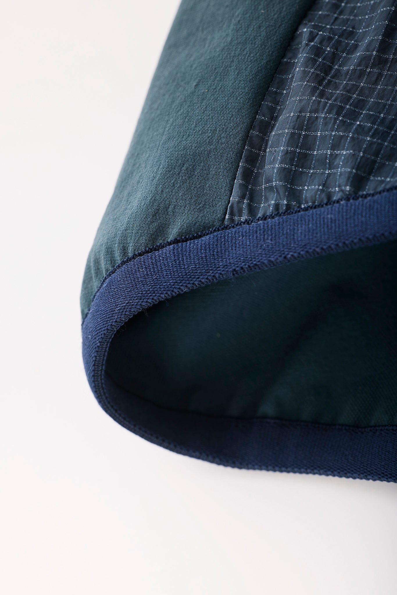 裾はパイピングで処理。重ね着する際も邪魔にならないシンプルな仕様。 -