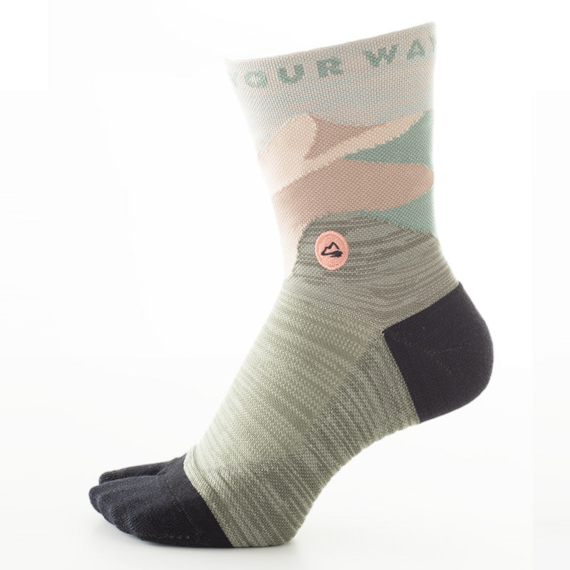 足袋型や5本指型のソックスは、指の力が伝わりやすくローンピーク等のローカットシューズとの相性がとてもいいです。