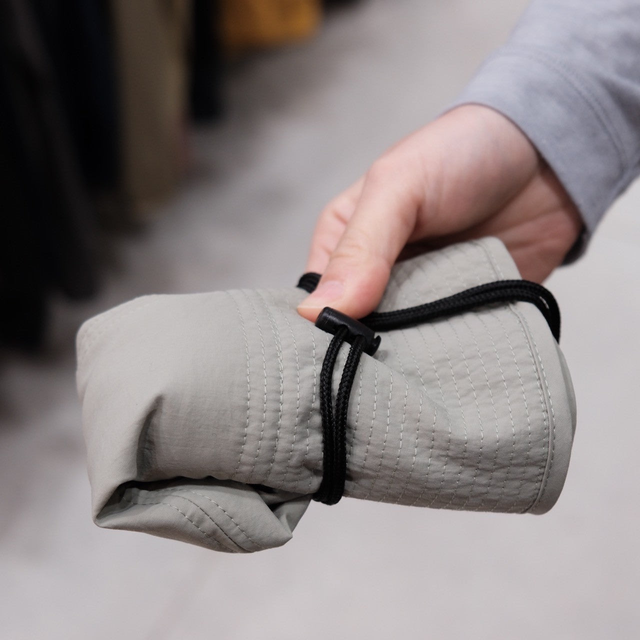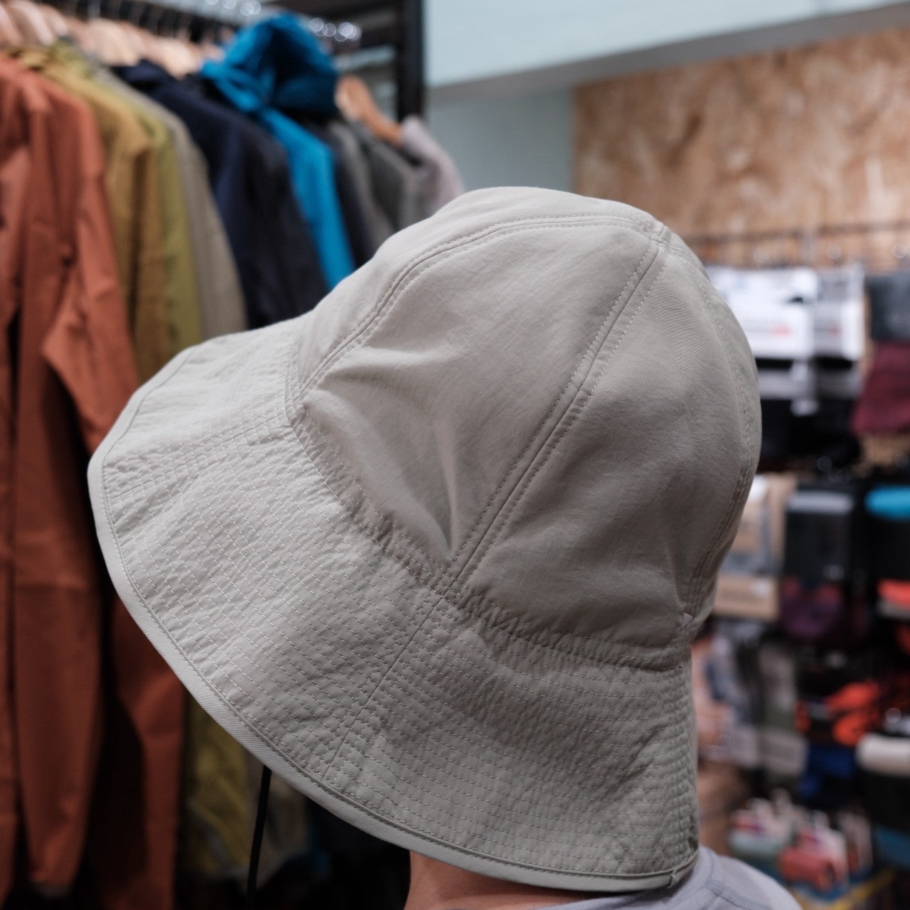 コットンのような滑らかな肌触りの撥水ナイロンのハットです。