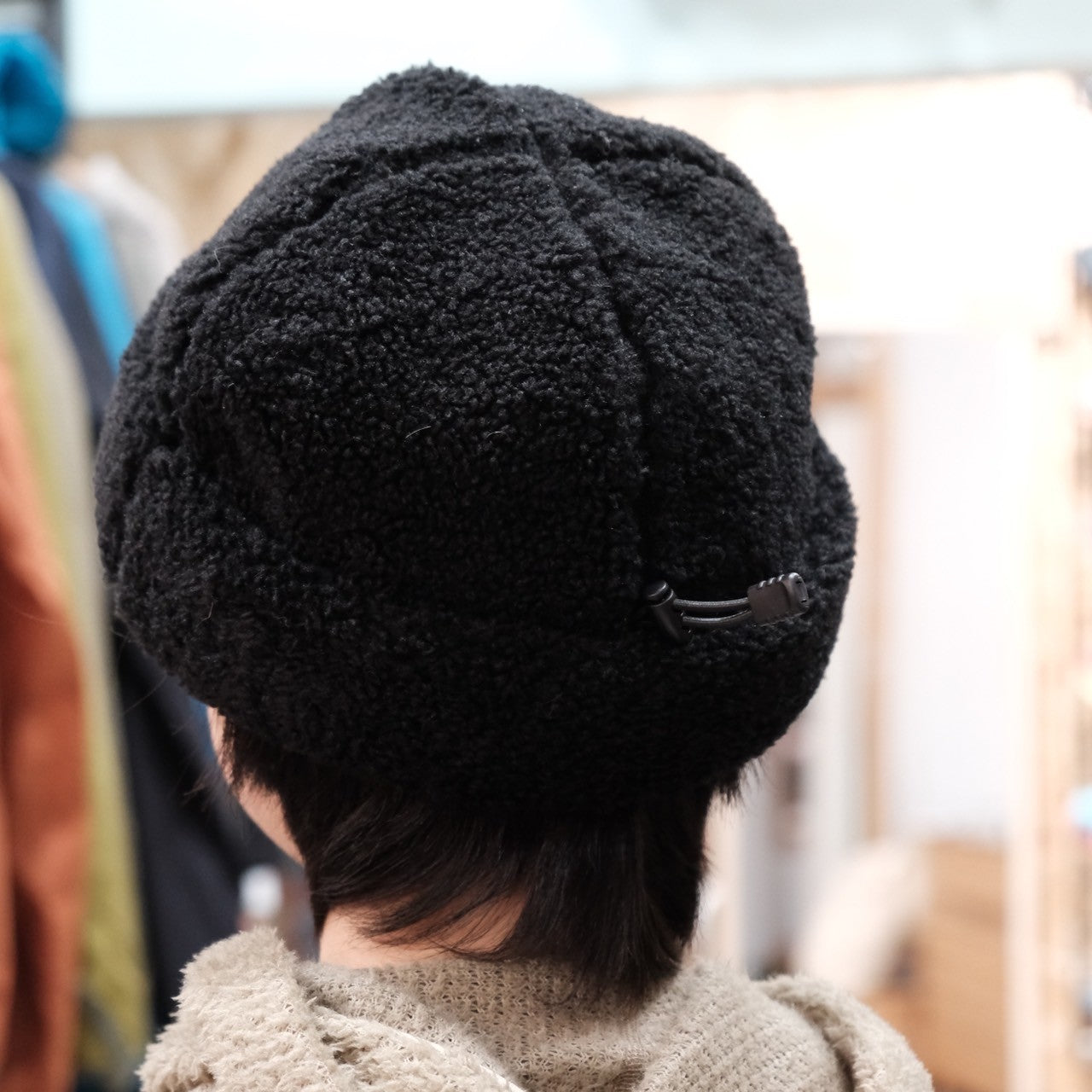軽くて柔らかい肌触りのボアを使用したキャップ。 深さのある4枚ハギのパターンとボアの適度なボリュームにより、バランスの良いシャープなシルエットに仕上げました。