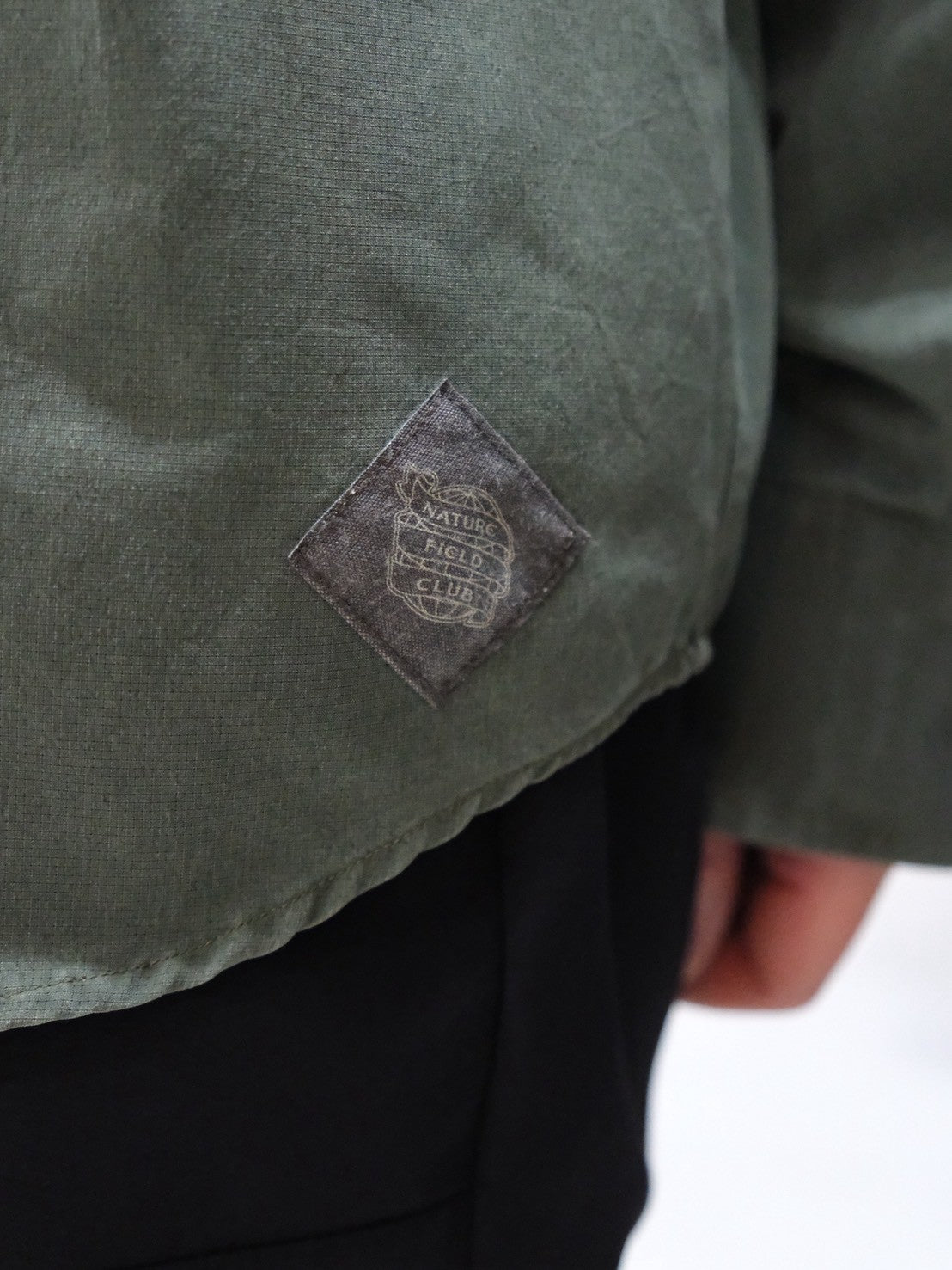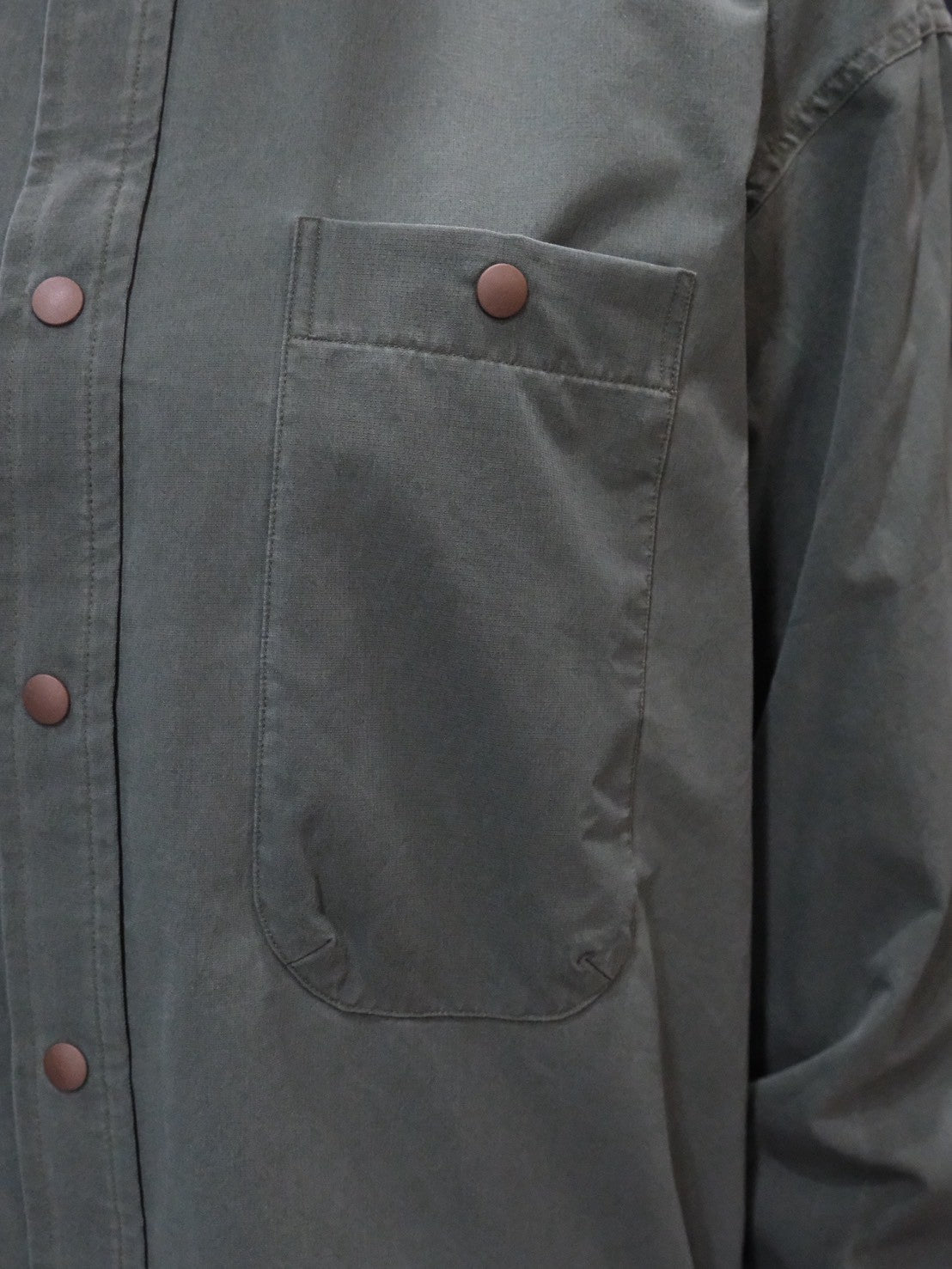 微細なメッシュ構造の生地表面に顔料プリントを施し製品洗い加工を入れる事で、まるでコットンのように自然なエイジング感を表現し、機能性とカジュアル感を両立させました。