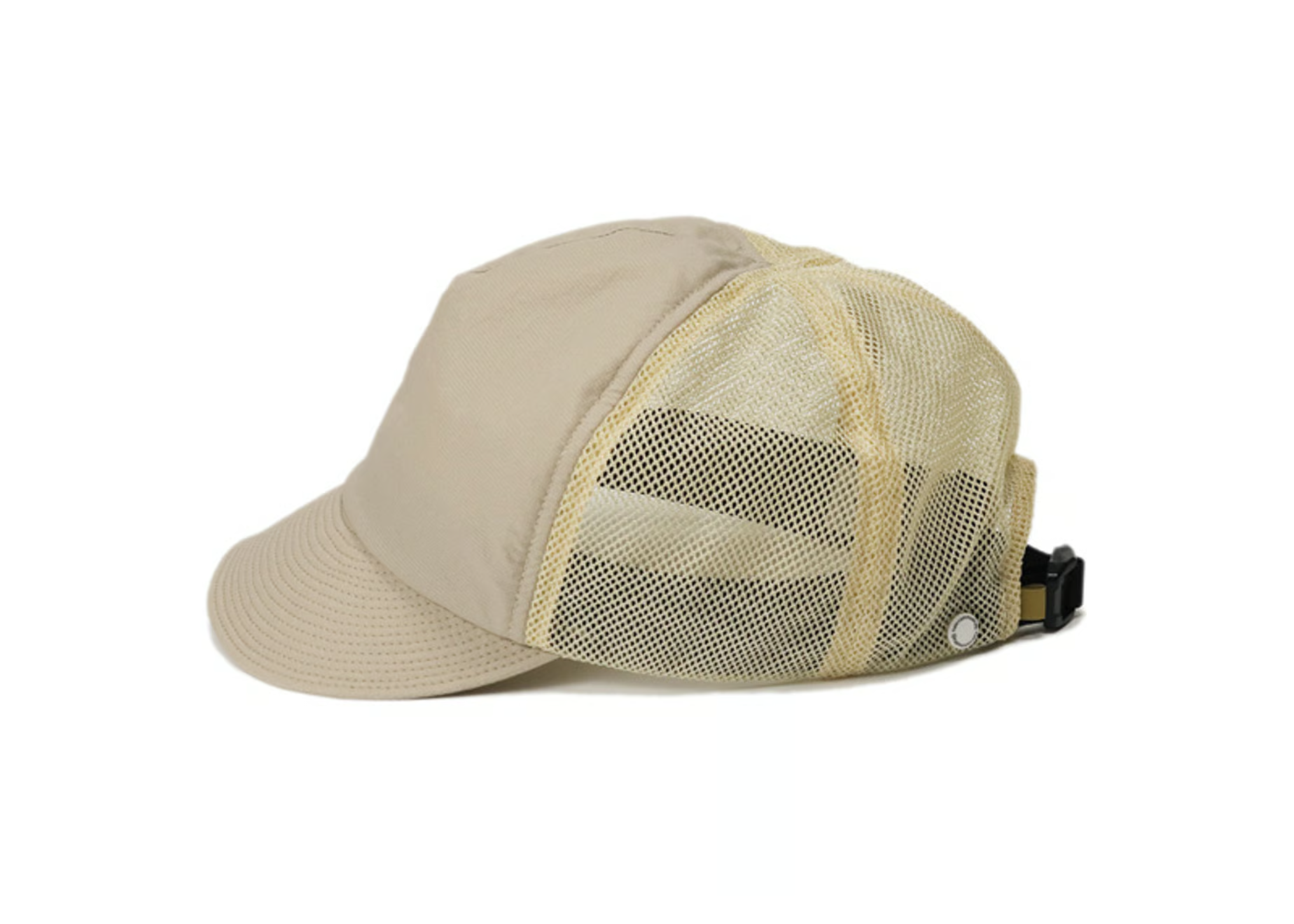 ソフトな使用感のあるメッシュキャップ。 前立てとつばには通気性と軽量さを兼ね備えたCOOLDOTSのミニリップストップを採用し メッシュは前立ての裏にまで使用することで、全体の硬さを統一させています。