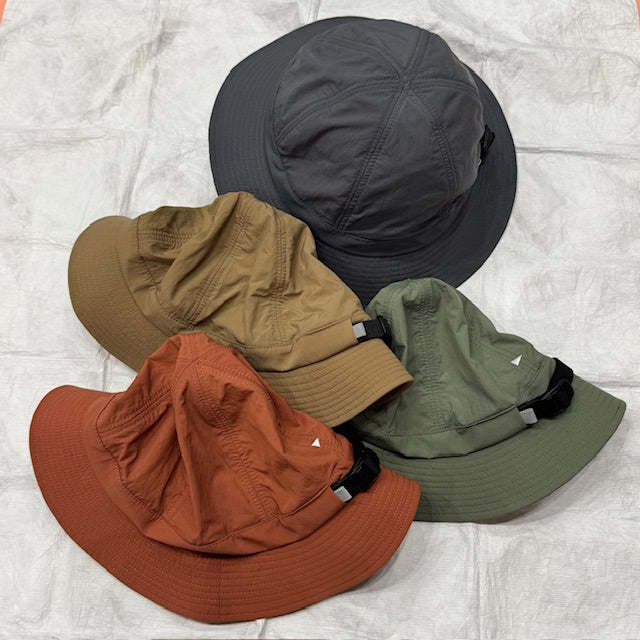 自然なシワ感としっかりとしたハリ感のある撥水ナイロン素材を使用したハット。