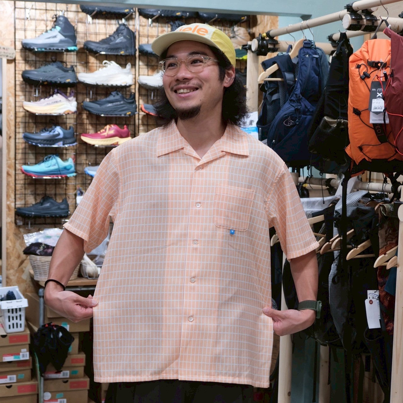 アロハシャツの開放的なデザインを取り入れた、見た目にも涼しいシャツです。