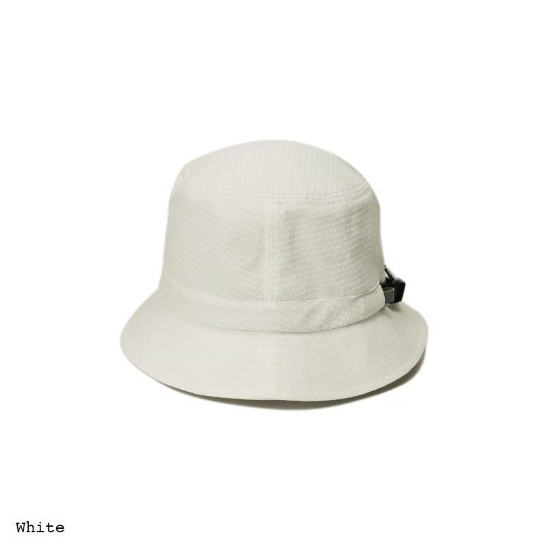 無数の通気孔があり通気性の高い快適機能素材に、水機能を併せ持つ、シアサッカーが涼しげな印象のハット。
