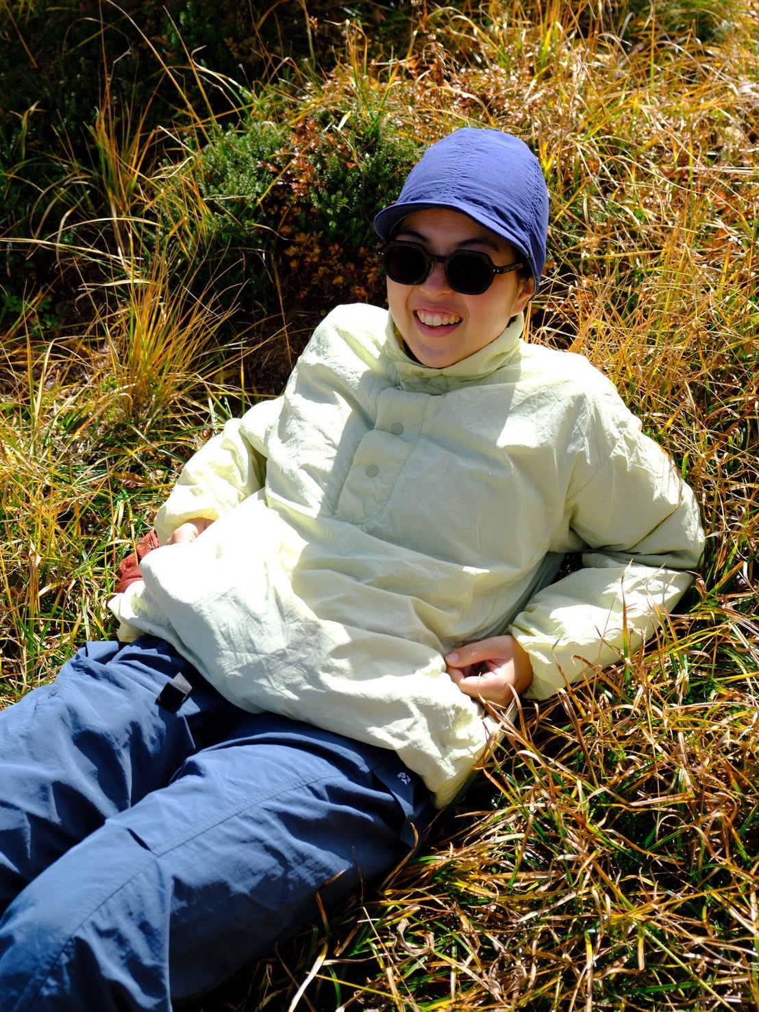 表地に採用している素材は100%リサイクルの20dn×20dnのナイロンタフタで、適度な防風性と通気性、撥水性、速乾性を備え、軽くてソフトな風合いでありながらアウターとして使用できる強度を兼ね備えています。ビンテージワッシャー加工による落ち着いた風合いも特徴です。