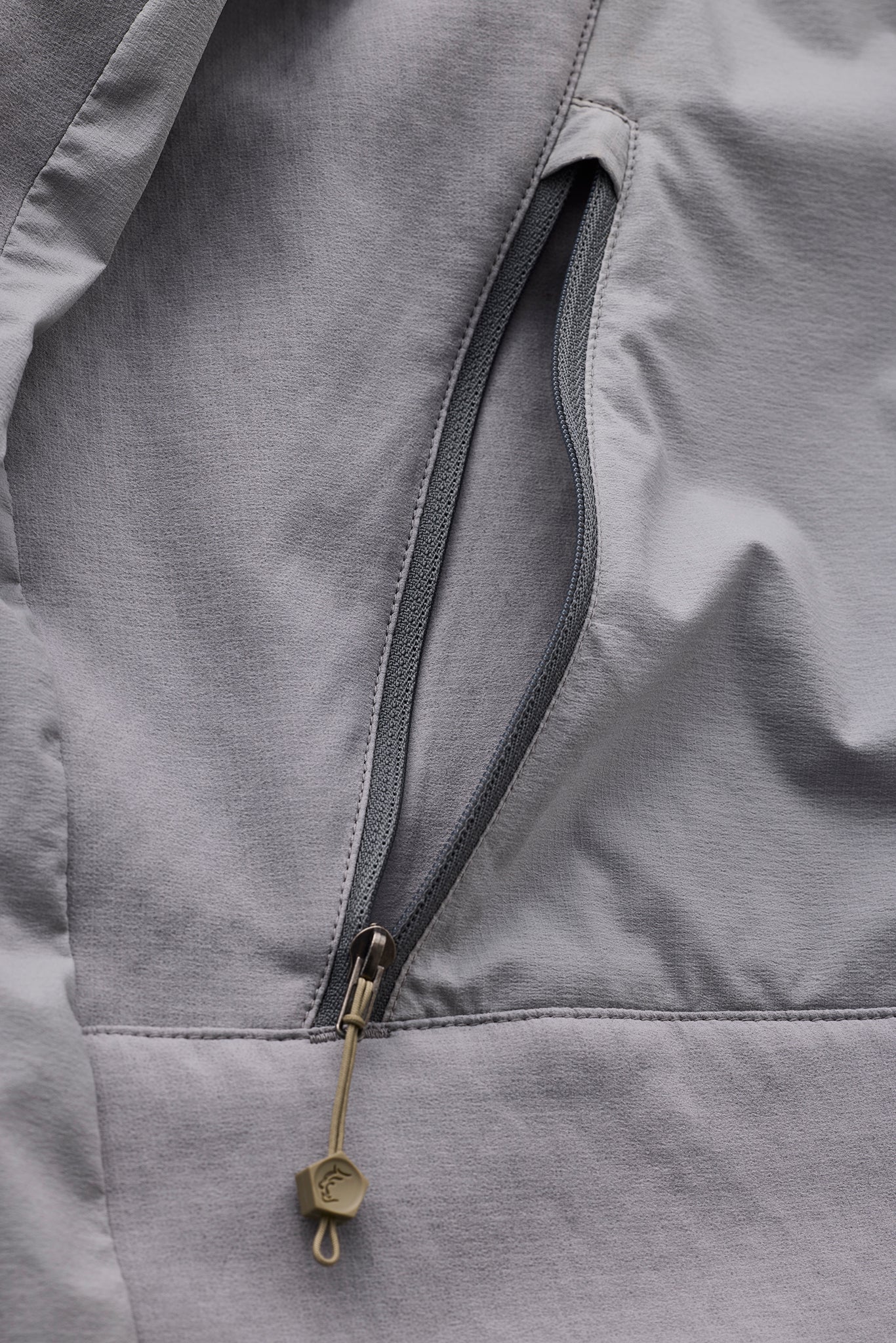 フロントの短いジッパーは、胸から腹部までに広がる大 容量のポケット。内側はメッシュ生地でベンチレーショ ンとしても機能する。 -