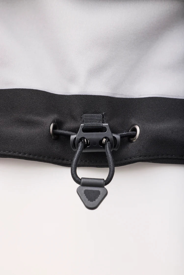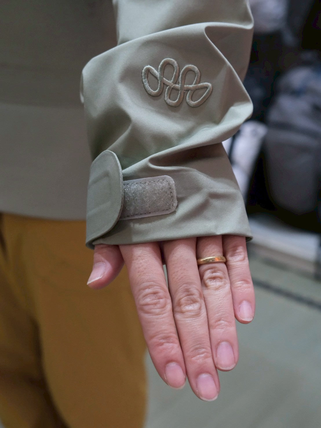 東レとの共同開発によって完成した次世代の防水通気素材です。ミクロ単位のポリウレタン繊維を何層にも吹き重ねたエレクトロスピニング製法によるESP メンブレン採用。何層にも重なるミクロの網の目が水分を遮断し、物理的な通気を可能にします。だから「透湿」ではなく「通気」。なおかつ、防水通気素材とは思えないやわらかな着心地がもうひとつの特徴です。表地は高強度ナイロンを使用し、耐久性と軽量性を両立。メカニカルストレッチにより100% ナイロンでありながら十分な伸縮性があります。裏地は吸湿速乾性に優れた20 デニールのニットバッカーにより、しなやかなテクスチャーと高機能を併せ持ち、高い防水性と通気性をバランス良く併せ持つ素材です。